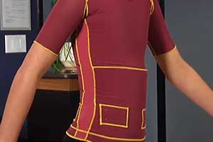 Patients wearing a vest together with a brief or leotard may experience discomfort when they bend and the two garments separate. We can design the pressure garments to overlap and we would incorporate hook & loop patches to allow the two garments to be joined. The default configuration is to place the loop piece on the inside of the vest, and the hook piece on the outside of the brief or leotard.